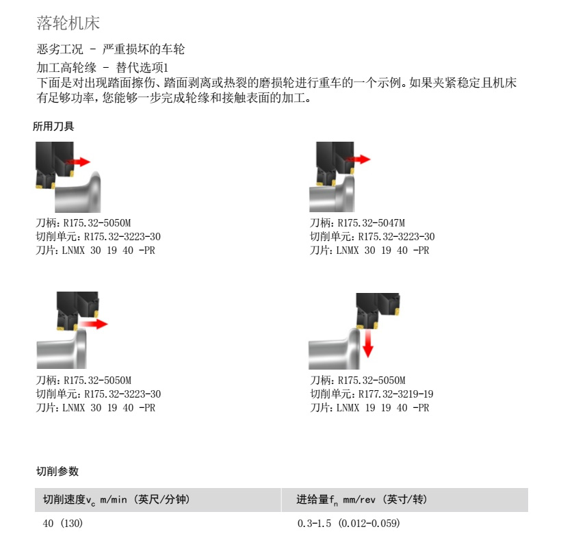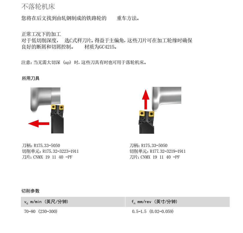 注意:當(dāng)無需大切深 (ap) 時(shí),這些刀具有時(shí)也可用于落輪機(jī)床。