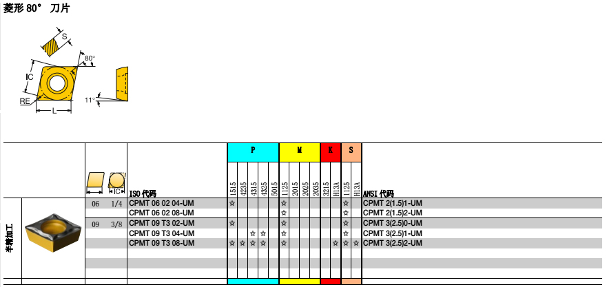 數控車床加工用80度菱形精鏜刀片CPMT060202-MF 1125,邊長06適合小零件加工,小內孔精鏜。
